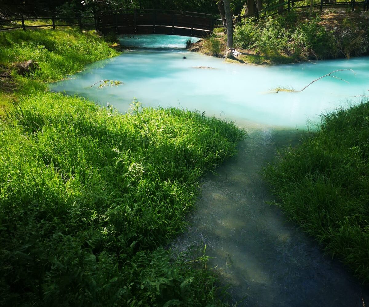 A pochi chilometri dall’Eremo di San Bartolomeo, vi attende una fiaba a cielo aperto: il Parco delle Sorgenti Sulfuree del Lavino. Questo parco naturale, dalle acque incredibilmente colorate di un turchese intenso, offre un’esperienza sensoriale unica. Il fiume Lavino, ricco di minerali e solfato, crea laghetti e ruscelli che sembrano usciti da un dipinto, in un’atmosfera di pace e tranquillità.