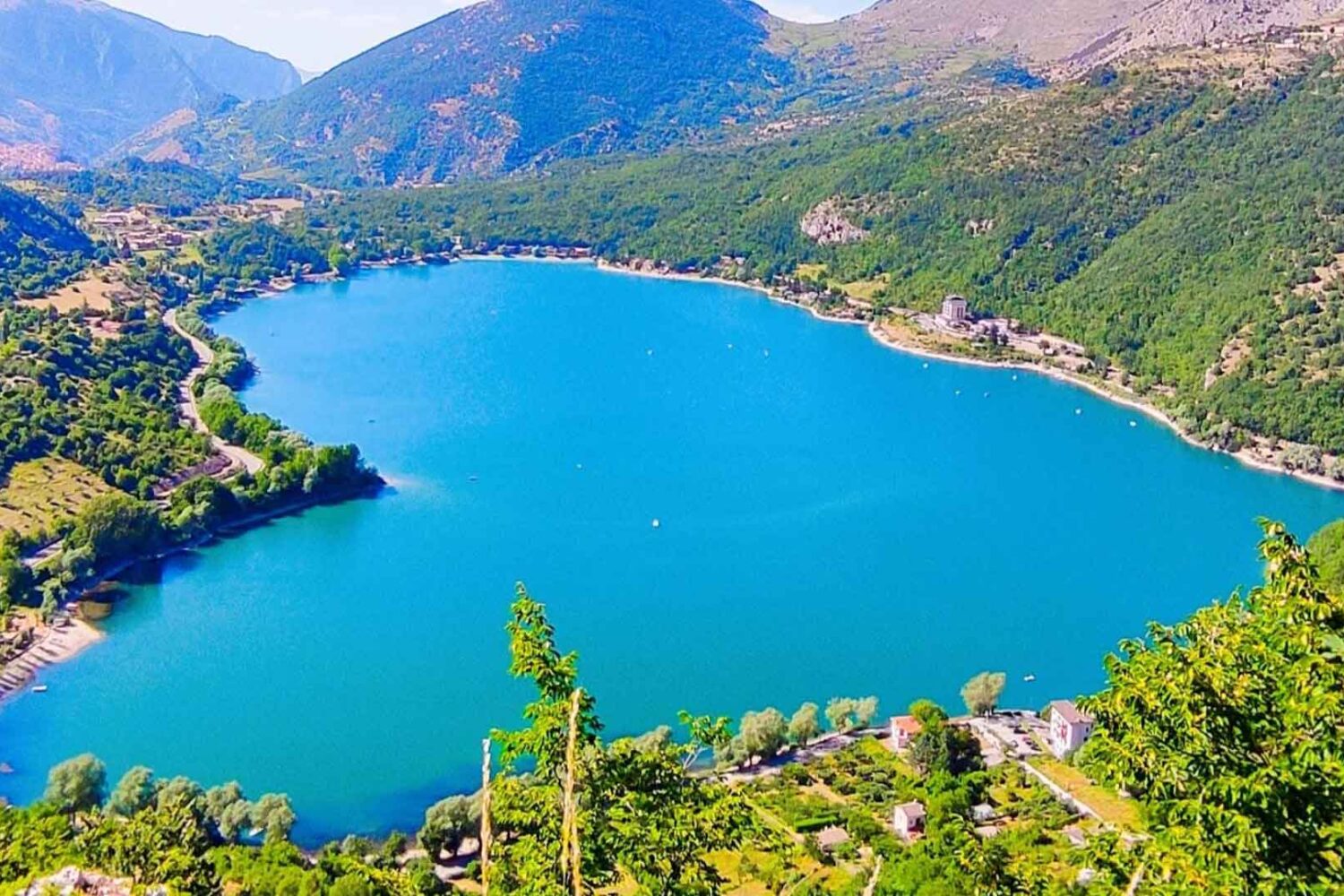 Nel primo pomeriggio ci spostiamo verso il Lago di Scanno, celebre per la sua straordinaria forma a cuore — un dono della natura che da secoli incanta visitatori e innamorati. Una passeggiata libera sul lungolago, un caffè, una foto ricordo… e poi il rientro verso casa con il cuore pieno.