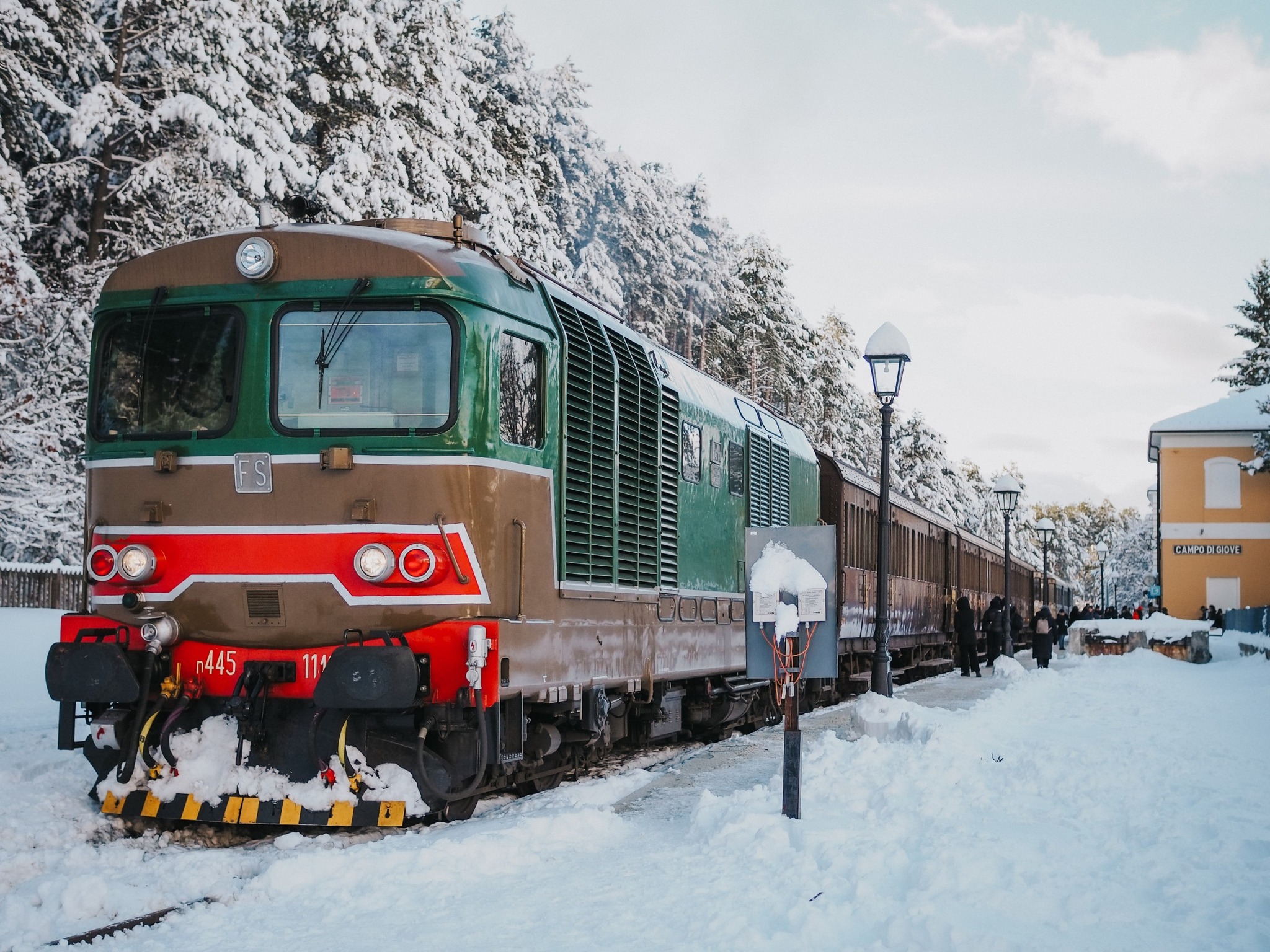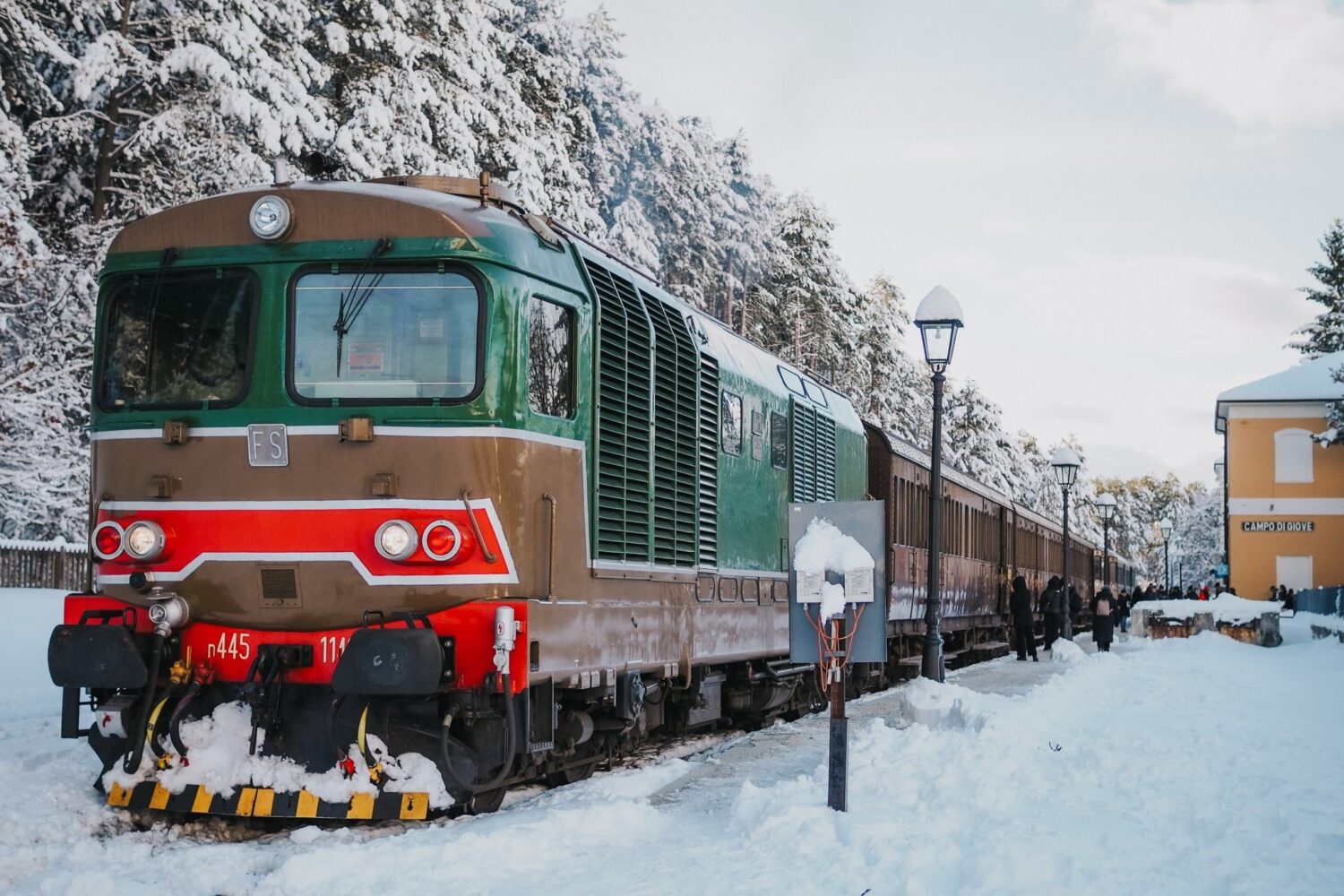 Viaggia a bordo di un treno d’epoca, un’esperienza affascinante e romantica per ammirare i panorami mozzafiato d’Abruzzo, con le sue montagne innevate e i borghi antichi.