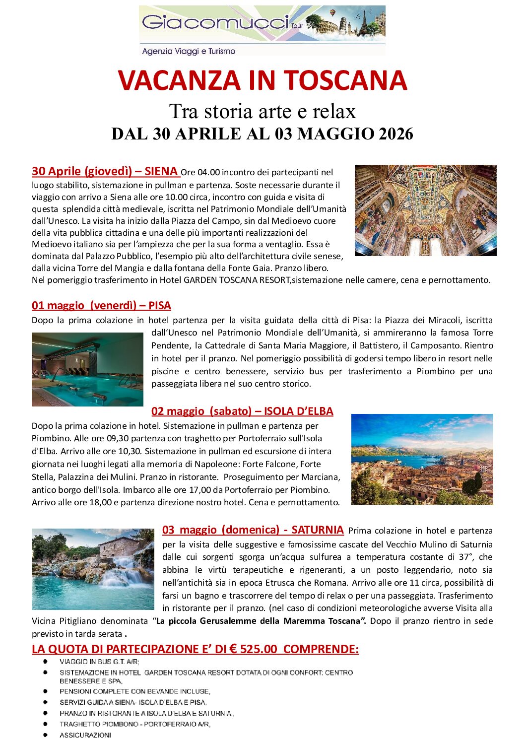 🚌VACANZA IN TOSCANA  30 aprile – 03 maggio 2026